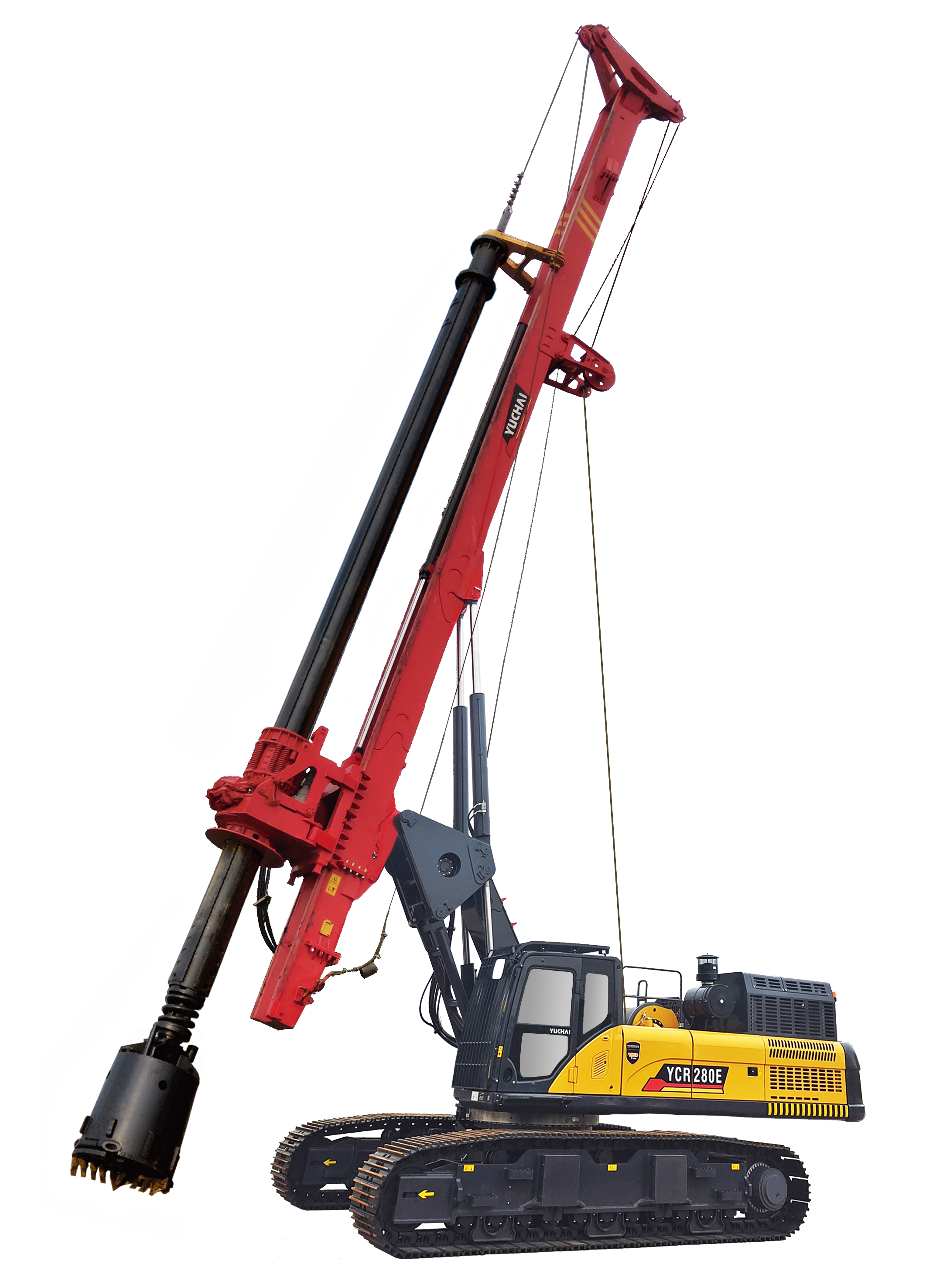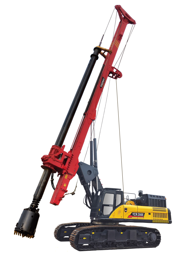 แท่นขุดเจาะแบบหมุน Yuchai YCR280 ติดตั้งเครื่องยนต์ Cummins X12 และเป็นไปตามมาตรฐานการปล่อยมลพิษแห่งชาติระดับ IV ของจีน มีระบบจ่ายไฟแบบเรียลไทม์ จ่ายไฟแรงสูงให้กับเครื่องจักร ระบบไฮดรอลิกนำเข้าครบชุด มีประสิทธิภาพสูง ประหยัดพลังงาน และมีเสถียรภาพ เสาแบบกล่อง โครงสร้างบูมคู่ทำให้แข็งแรงและทนทาน วินช์หลักมีสายพับสองชั้นและการจัดเรียงชั้นเดียว ลวดสลิงมีอายุการใช้งานยาวนาน การใช้ไดรฟ์แบบโรเตอรี่สามอินพุต ทำให้แรงบิดเอาต์พุตมีขนาดใหญ่ขึ้นและแรงขุดก็แข็งแกร่งขึ้น การใช้ตัวลดแรงบิดเบรกขนาดใหญ่แบบใหม่ ทำให้การตอกเสาเข็มมีเสถียรภาพมากขึ้น